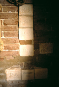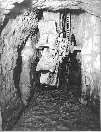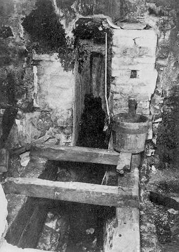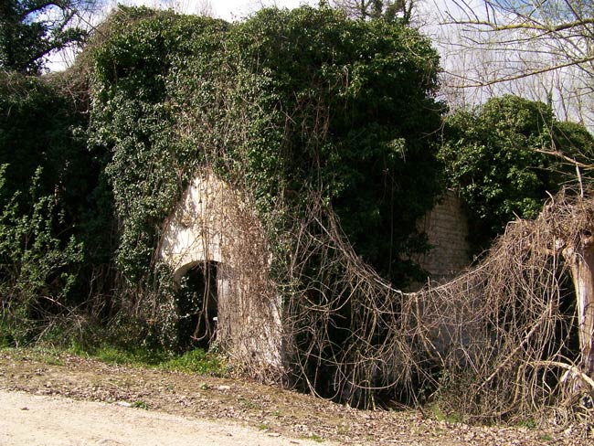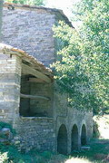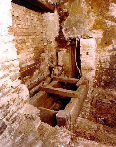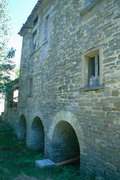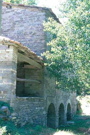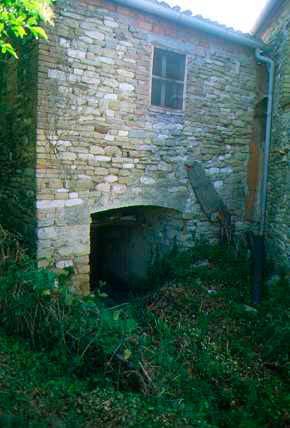 Mulino Malla: muro del bottaccio, maggio 1998. Il bottaccio è separato dall'edificio del mulino
