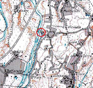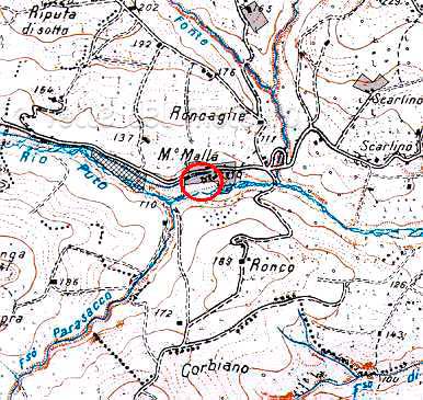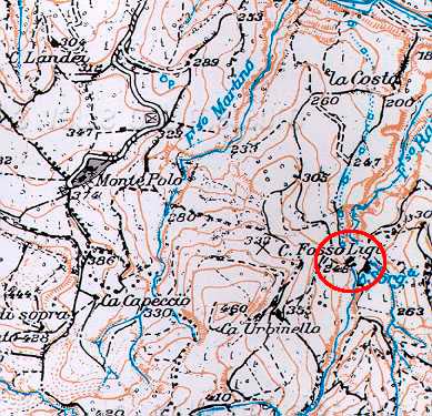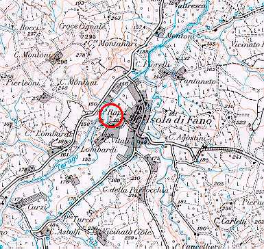Mulino Mariani a Isola di Fano. Carta Reg. Marche 1:25.000 116 I (autorizz. IGM n. 4877 del 2-11-1998)