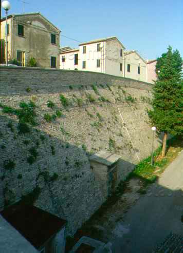 Mura Malatestiane-pontificie a Fano, lato verso il mare vicino al Bastione Sangallo, agosto 2007