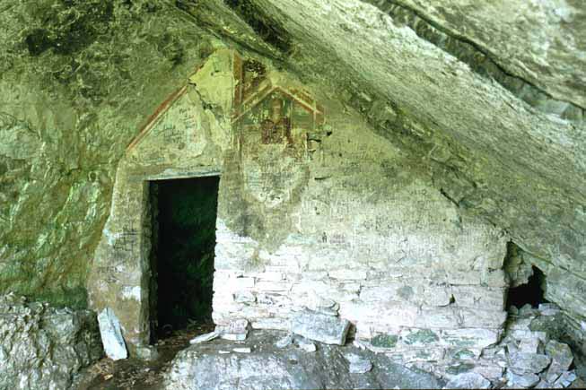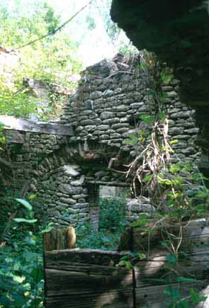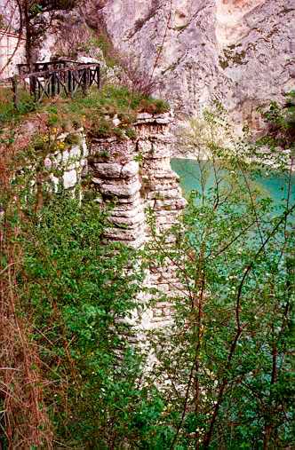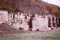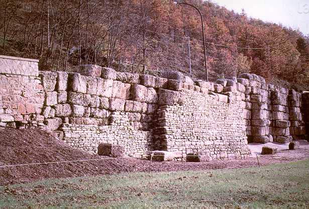 Muro di sostegno della Flaminia a Pontericciòli (Cantiano), luglio 1996. Il muro è detto localmente Pontone