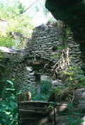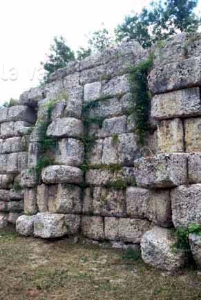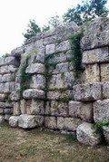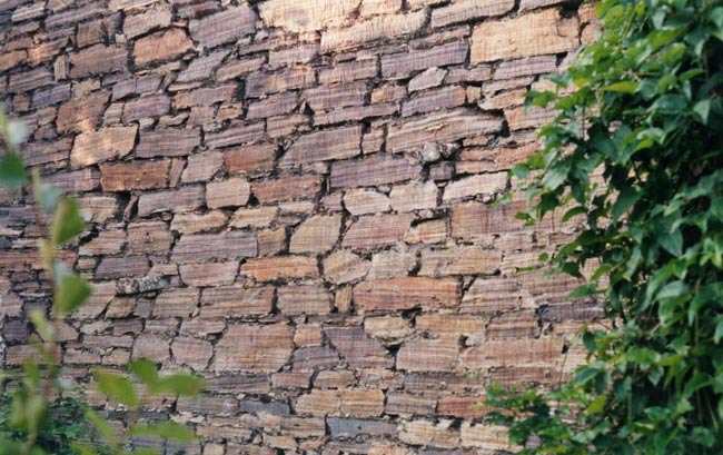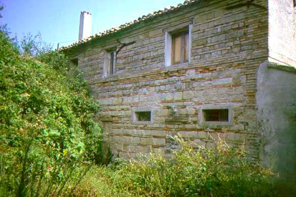 Muratura del retro di Casa voc. Galantara, 1998. E' visibile l'alternanza di file di mattoni e di blocchetti di arenaria