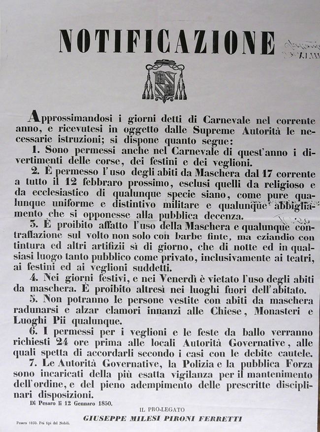 Autorizzazione Archivio di Stato di Pesaro n. 154 del 23/2/2006