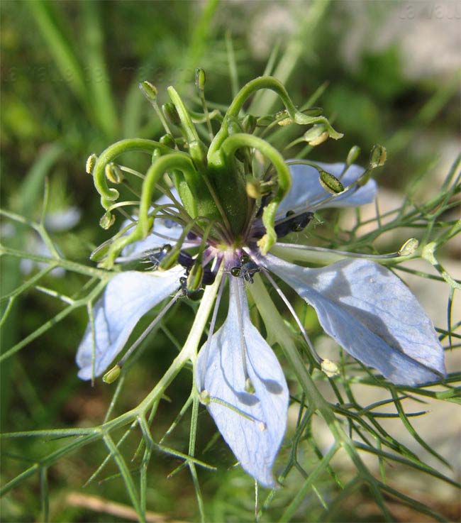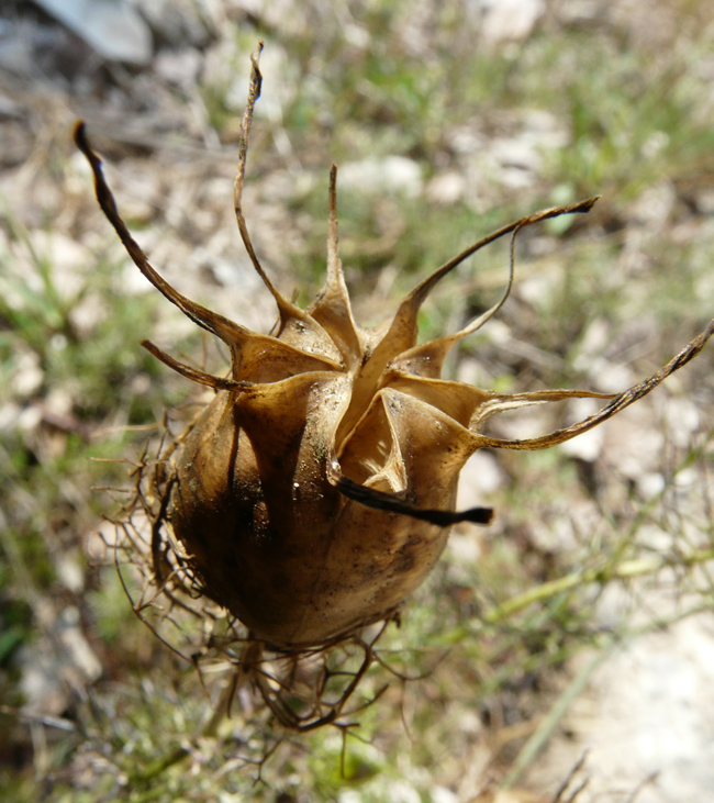 Nigella damascena in frutto, pendici del M. Paganuccio presso il Fosso del Rio, giugno 2009