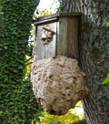 Nido di Vespa crabro iniziato all’interno di un nido artificiale per uccelli privo di fondo, bosco di Tecchie (Cantiano), ottobre 2009
