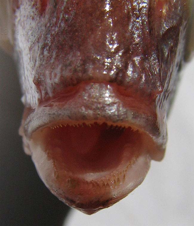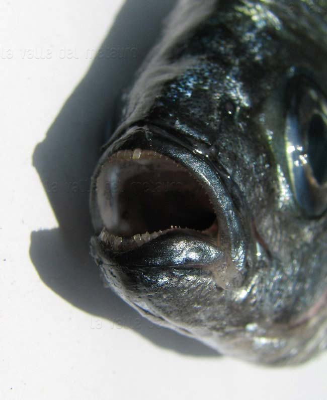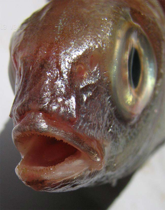 Occhialone di 16,5 cm, particolare della bocca. Pescherie di Fano, giugno 2006