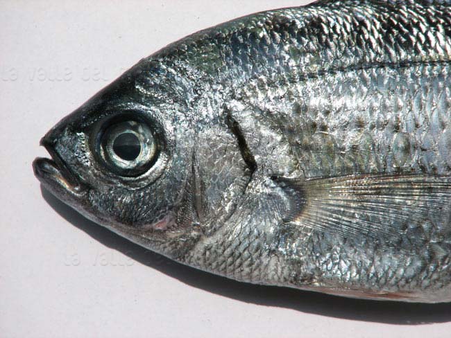 Occhialone di 16,5 cm, particolare della testa. Pescherie di Fano, giugno 2006