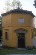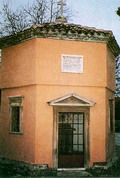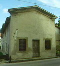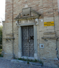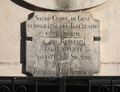Oratorio del Sacro Cuore a Cardella (Piobbico), dicembre 2007. Lapide sulla facciata
