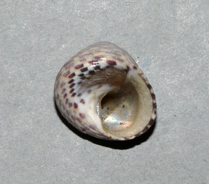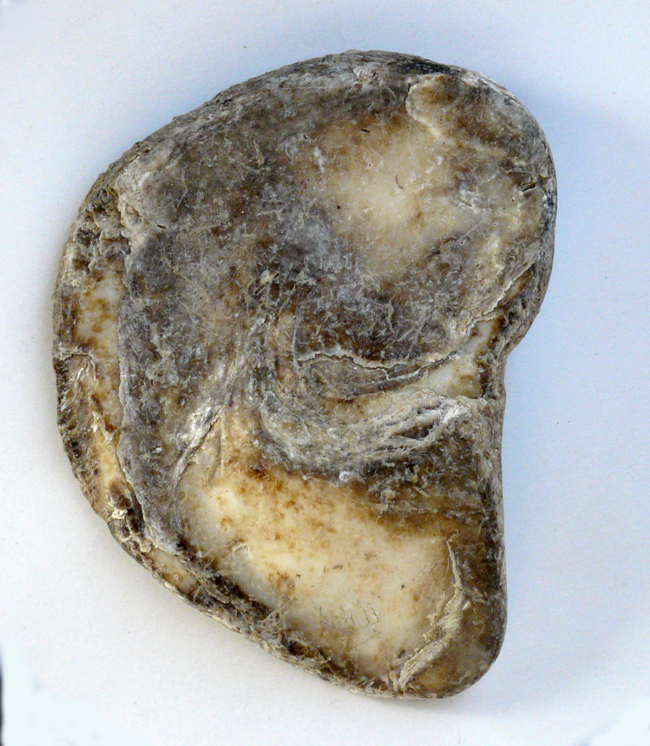 Ostrea edulis di 64 mm (interno della valva destra, quella piatta), villaggio della tarda Età del Bronzo a Chiaruccia di Fano
