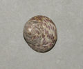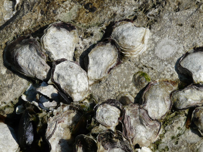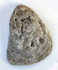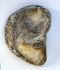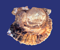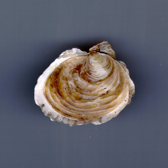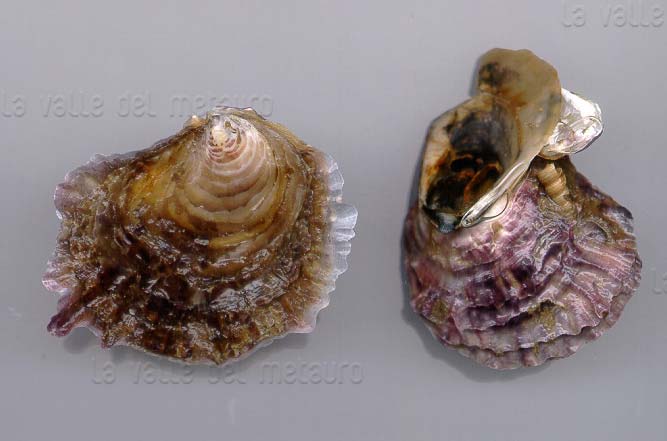 Ostrea edulis di 50 mm (valva destra, la superiore), spiaggiata a Fano, dicembre 2001
