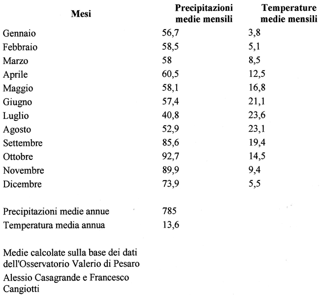 Osservatorio Serpieri di Urbino: temperature e precipitazioni medie dal 1955 al 2003 (da www.pesarourbinometeo.it)