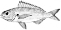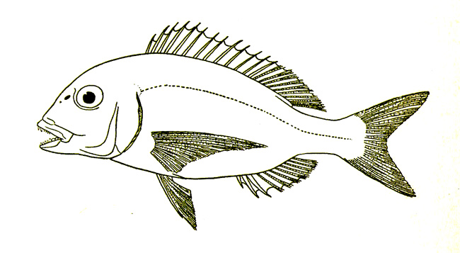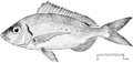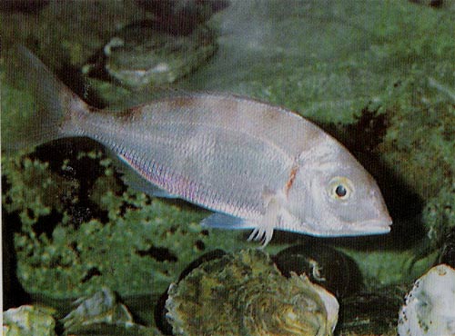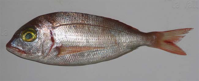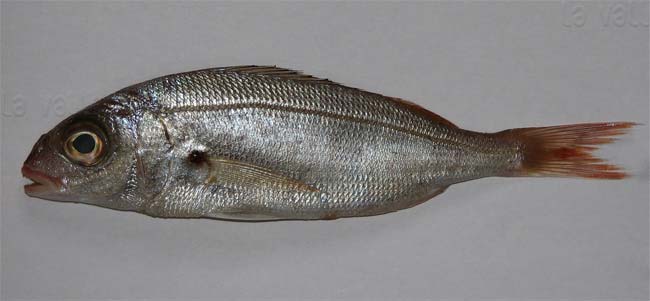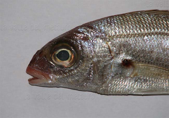 Pagello bastardo di 16 cm, particolare della testa. Pescherie di Fano, giugno 2006
