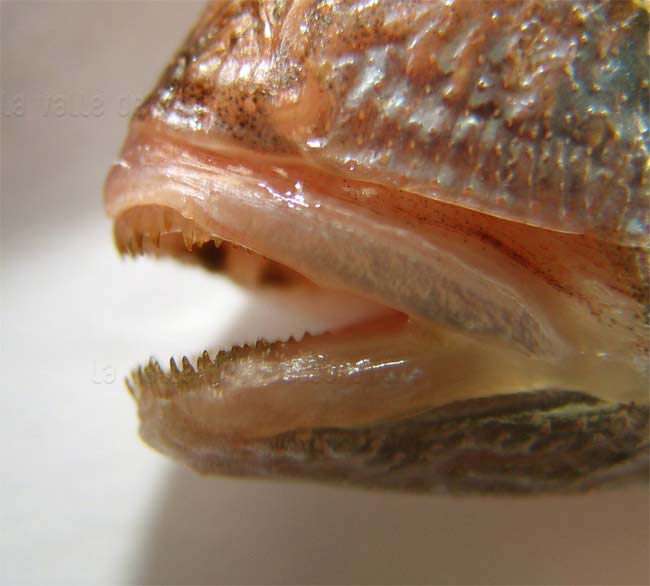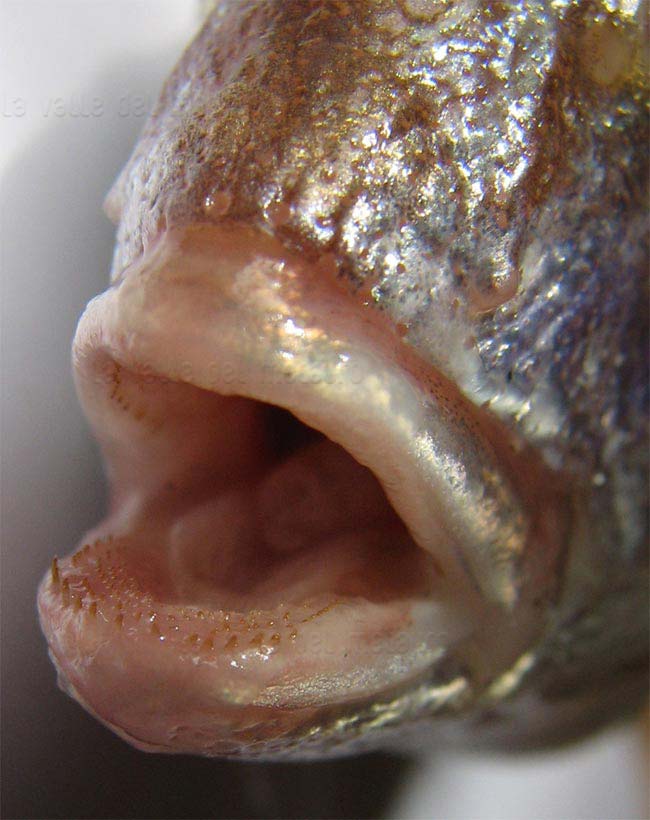 Pagello bastardo di 18,5 cm, particolare della bocca. Pescherie di Fano, giugno 2006