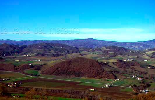 Paesaggio tipico del bacino del Metauro: valle del Candigliano ad Acqualagna