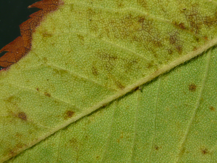 Pagina inferiore di fogliolina di Rosa corymbifera, Bocca Trabaria, luglio 2011