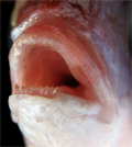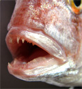 Pagello bastardo di 16 cm, particolare della bocca. Pescherie di Fano, giugno 2006
