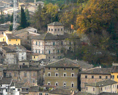 Palazzo Guazzugli-Buonaiuti (con altana); in primo piano Palazzo Cini. Pergola, novembre 2009 Foto di:Poggiani Luciano