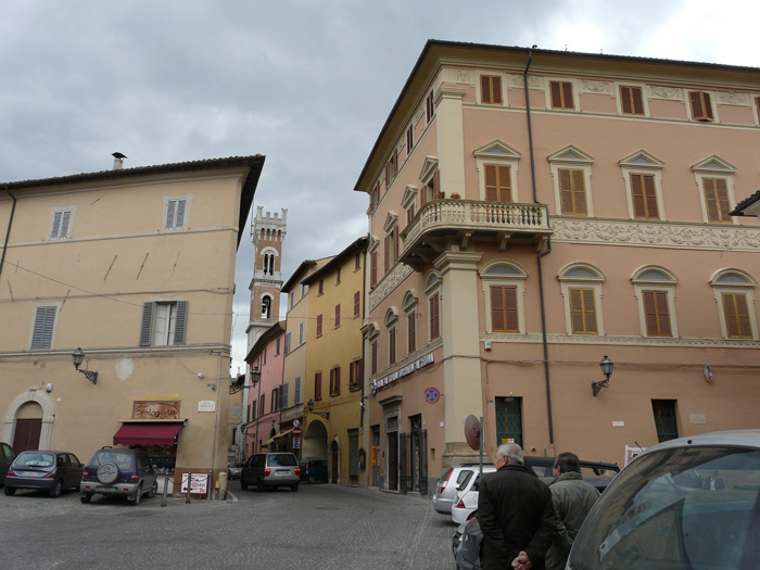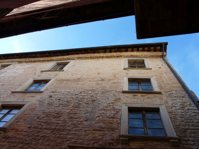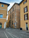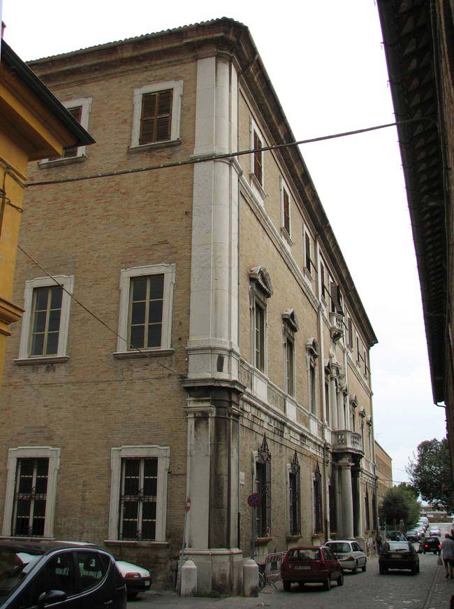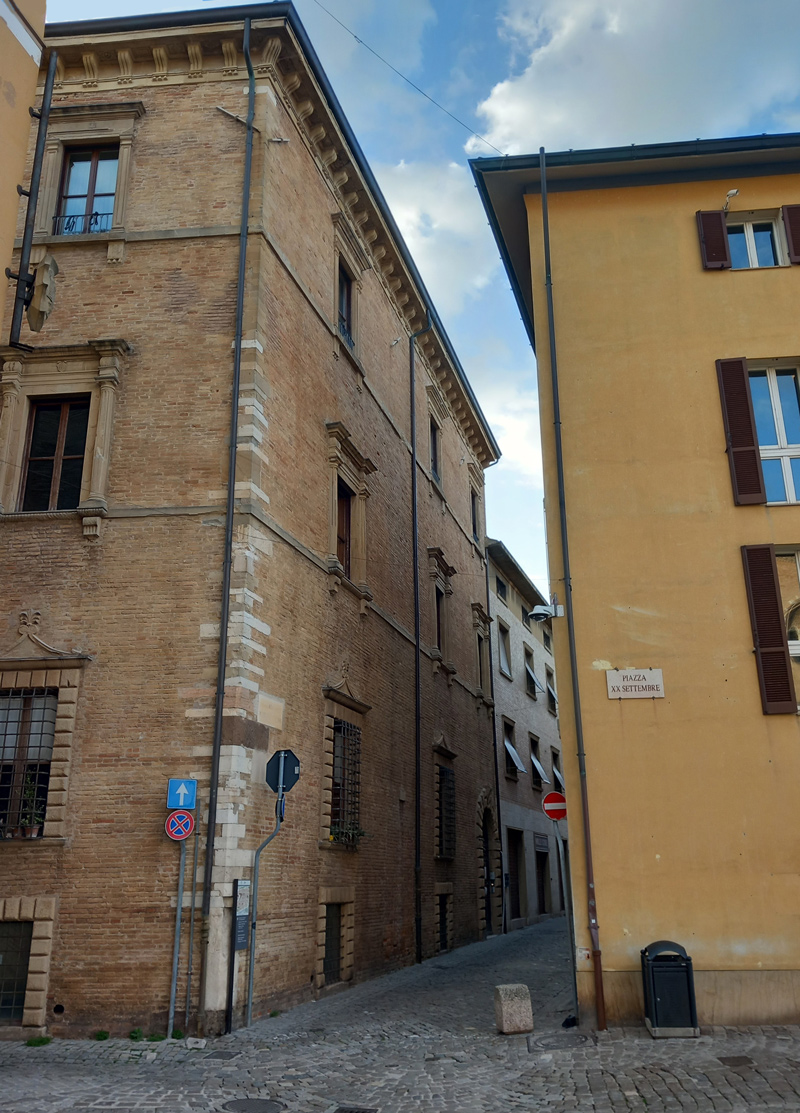 Palazzo Palazzi sul fianco in Via Froncini visto da Piazza XX Settembre, aprile 2025
