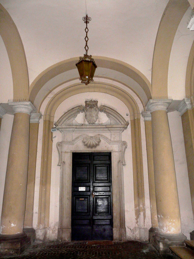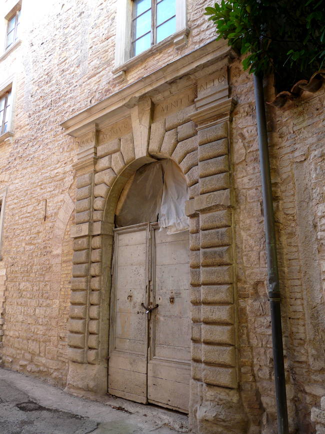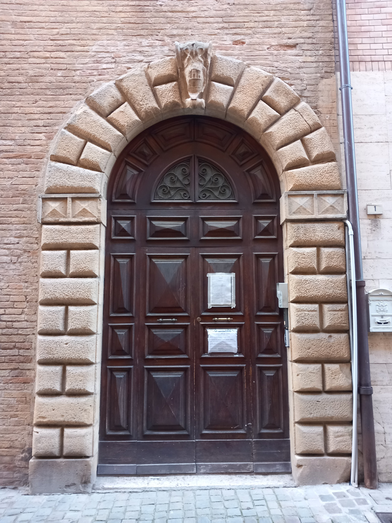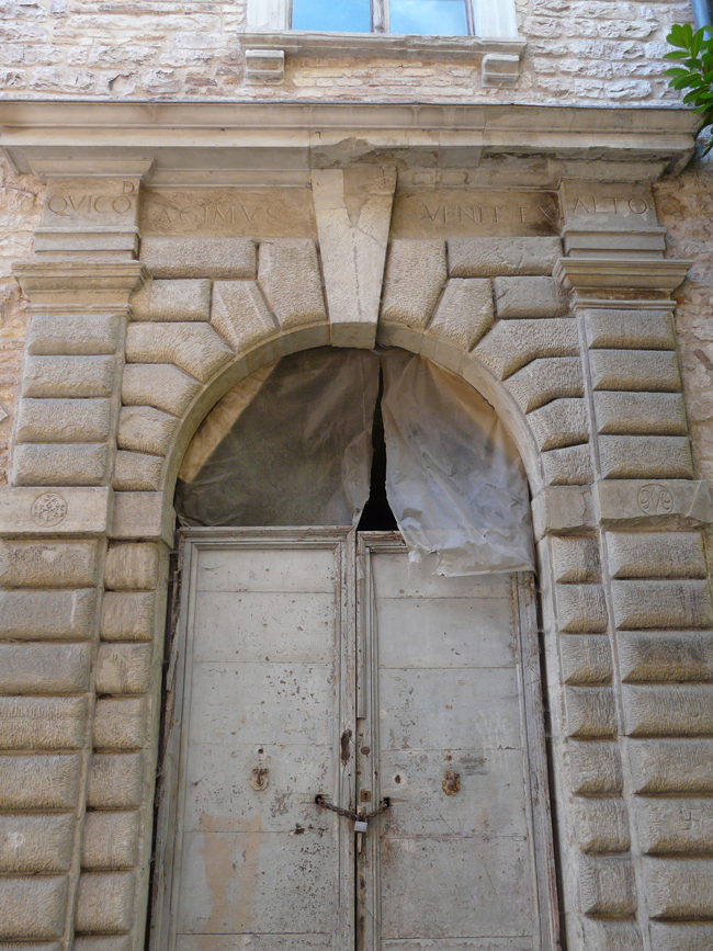 Palazzo Palazzi, portale in Via Dé Cuppis con lo stemma della Famiglia, gennaio 2010