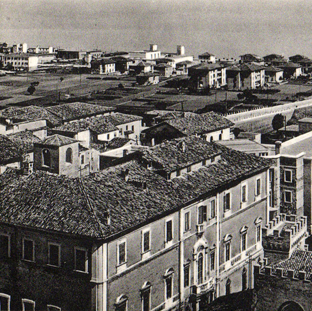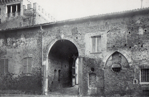 Palazzo Malatestiano a Fano, lato su Via Montevecchio con l'Arco della Regina (ora chiuso), prima del 1930 (da BATTISTELLI e DIOTALLEVI 1982)