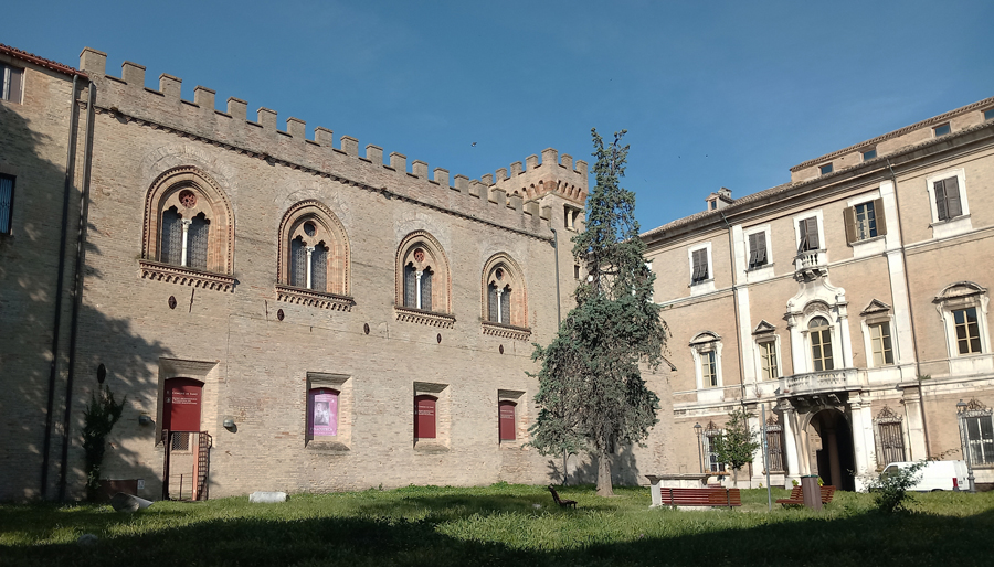 Palazzo Malatestiano visto dal Giardinetto Leopardi a Fano, maggio 2025, a destra il Palazzo Montevecchio