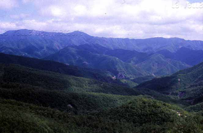 Panorama dei monti dall'Alpe della Luna a Bocca Trabaria, visto dalla Colubraia presso Figgiano (Borgo Pace)
