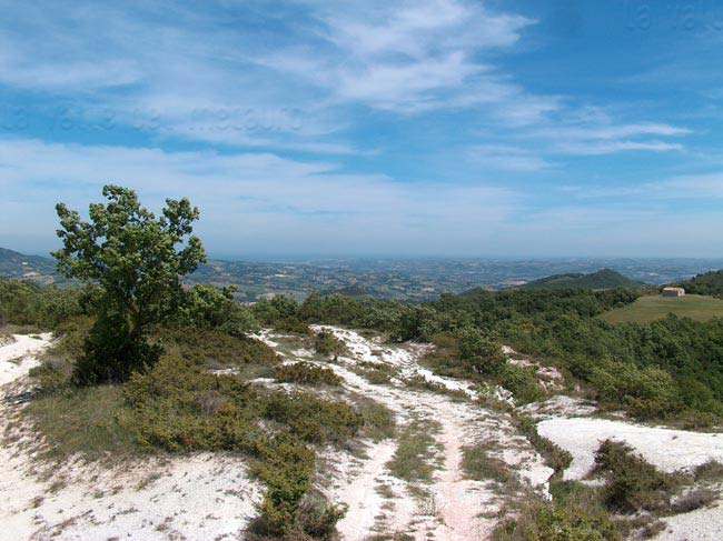 Panoramica dalla vetta verso il mare, in lontananza sulla destra il Conero marzo 2016
