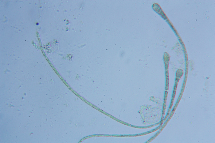 Parafisi cilindriche con apice ingrossato e ricoperte di granulosità di Geopixis majalis, Monti della Cesana, gennaio 2020