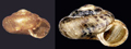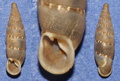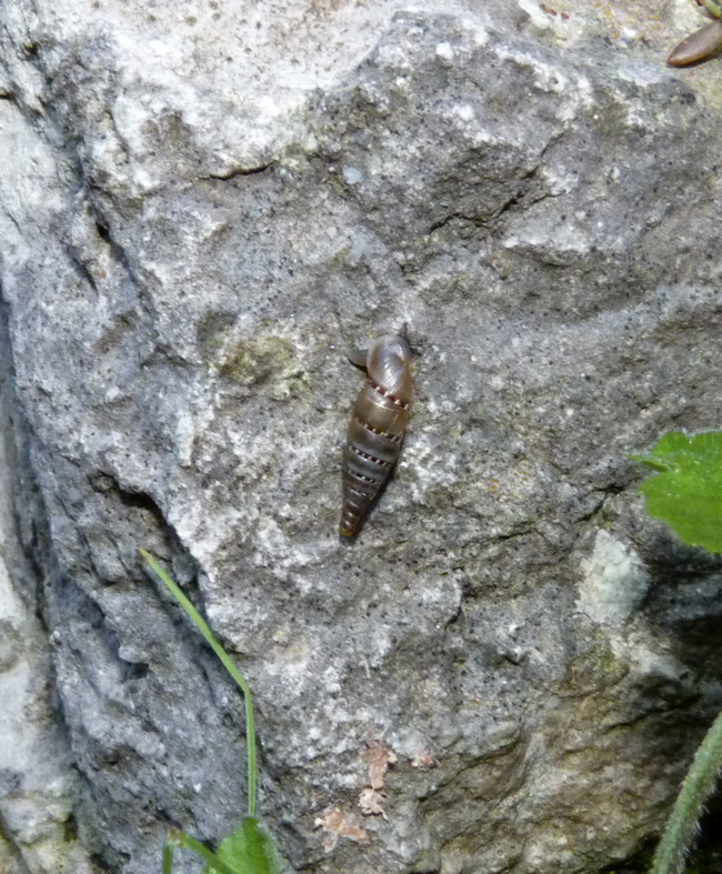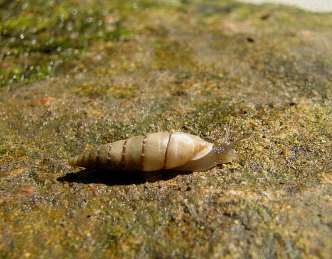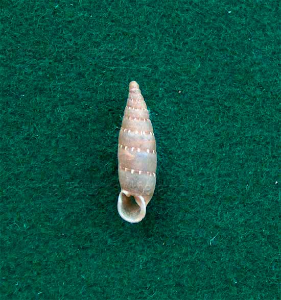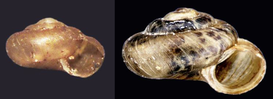Paralaoma servilis, esempl. di 1,5 mm, giardino alla periferia di fano, maggio 2017; a dx: Paralaoma servilis (foto S. Cianfanelli)
