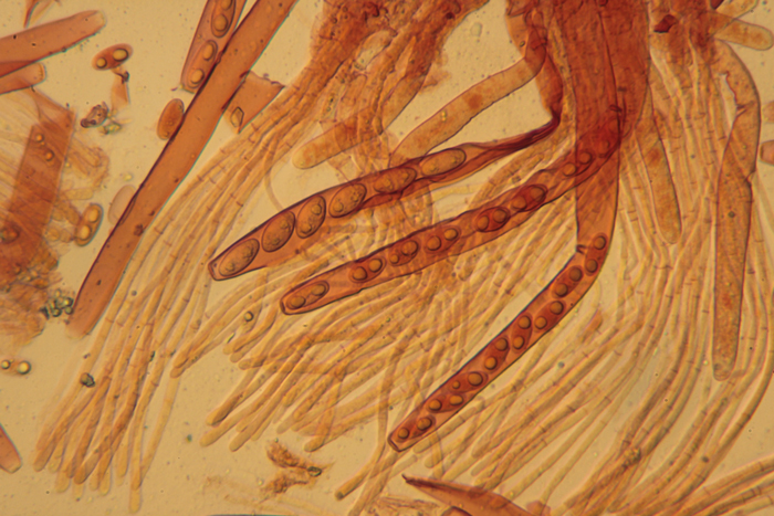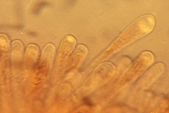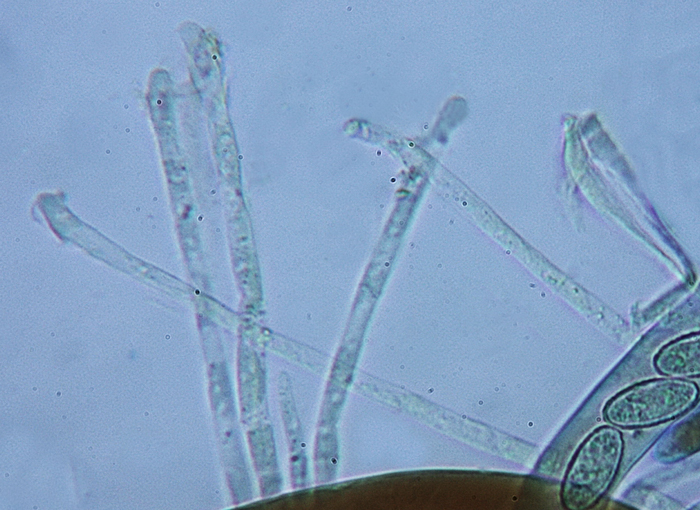 Parafisi cilindracee, sottili, ricurve e con apice ingrossato di Otidea bufonia, M. Rosso (Serre), novembre 2013