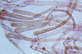 Parafisi cilindriche con apici ingrossati e smussati di Sarcosphaera coronaria, Fontecorniale, maggio 2012