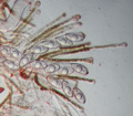 Parafisi cilindriche con apice rigonfio di Scutellinia setosa, Bosco di Montevecchio a Fano, maggio 2013
