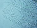 Parafisi ad apice arrotondato e rigonfiamenti in sequenza, settate di Peziza varia, Acquapartita (Serre), ottobre 2012