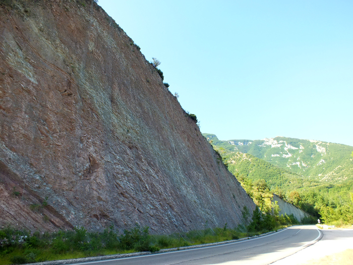 Parte sommitale della Formazione della Scaglia Rossa, scarpata stradale dell'Apecchiese poco ad Est di Piobbico (all'altezza del depuratore), giugno 2012