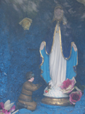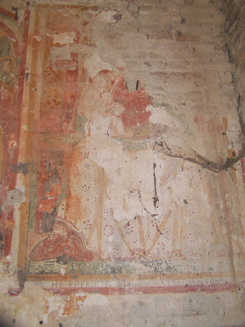 Particolare dell'affresco in cui compare la scritta: Hoc op fecit... Dona... Mateo d'Antoni, Fontecorniale (Montefelcino), novembre 2008
