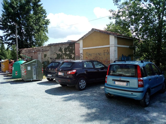 Particolare del parcheggio all'ingresso della stazione di Calcinelli - Maggio 2018