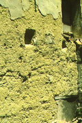 Particolare del muro di Casa Signoretti, Montemaggiore al Metauro, giugno 1991