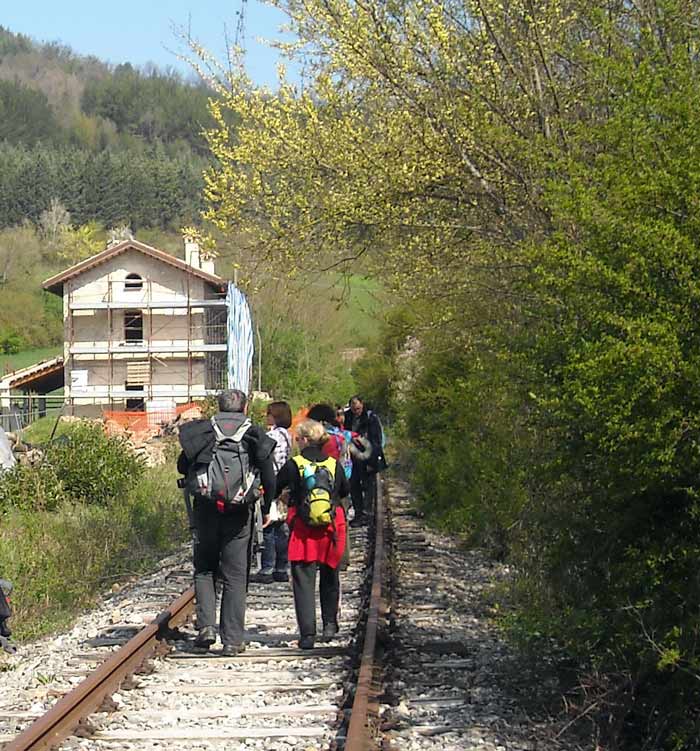 Passeggiata da Fermignano a Urbino. In ristrutturazione casa lungo i binari. Aprile 2010