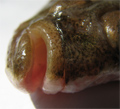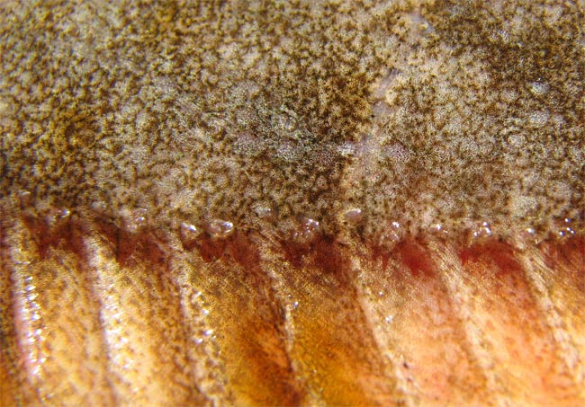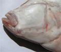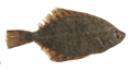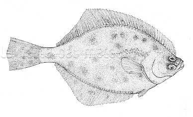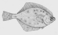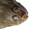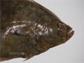 Passera di 22 cm, particolare della testa dal lato cieco. Pescherie di Fano, giugno 2006