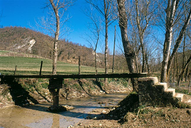 Passerella sul Metauro a monte di Calmazzo (Fossombrone e Fermignano), luglio 1984