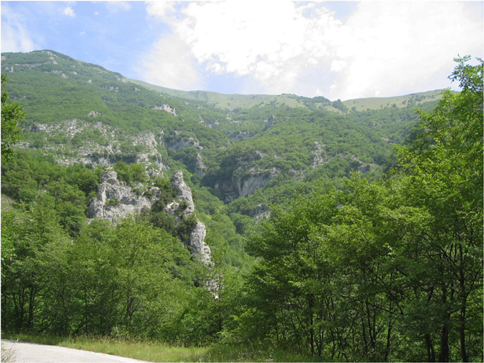 Pendici Nord del M. Tenetra (Gruppo del Catria) con la valle del T. Burano, maggio 2009