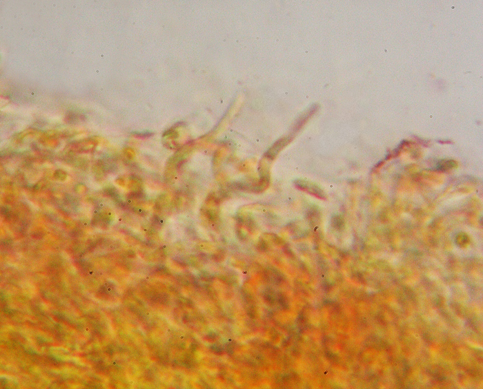Peli superficiali della cuticola esili, sinuosi di Russula versicolor, Serre ad Acquapartita, ottobre 2012