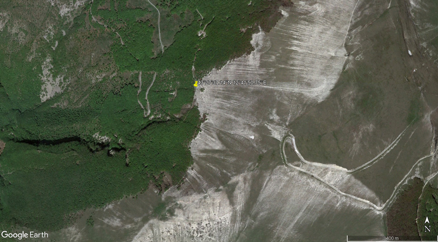 Pendice detritica sul versante ovest del Monte Catria (da: Google Earth, ripresa del 13 maggio 2022)