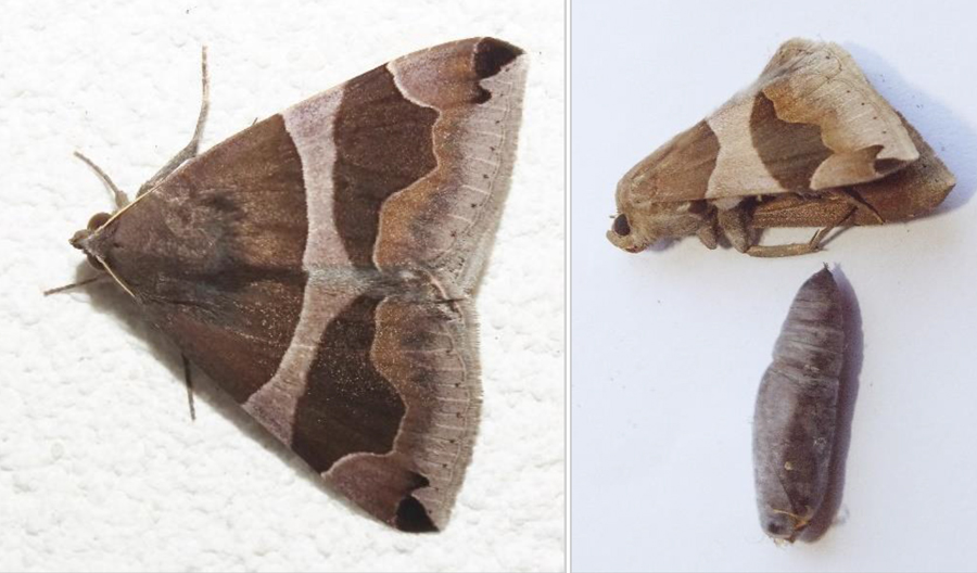Periferia di Fano, a sx: Dysgonia torrida, giugno 2013; a dx: Dysgonia algira, giugno 2015