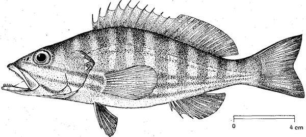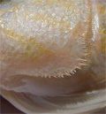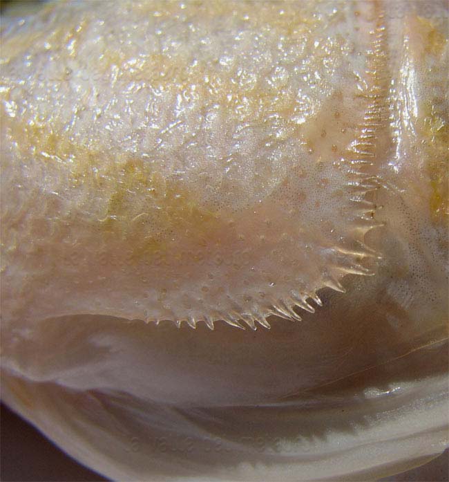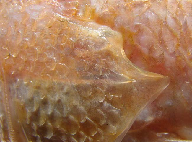 Perchia di 23 cm, margine dell'opercolo con spine. Pescherie di Fano, giugno 2006