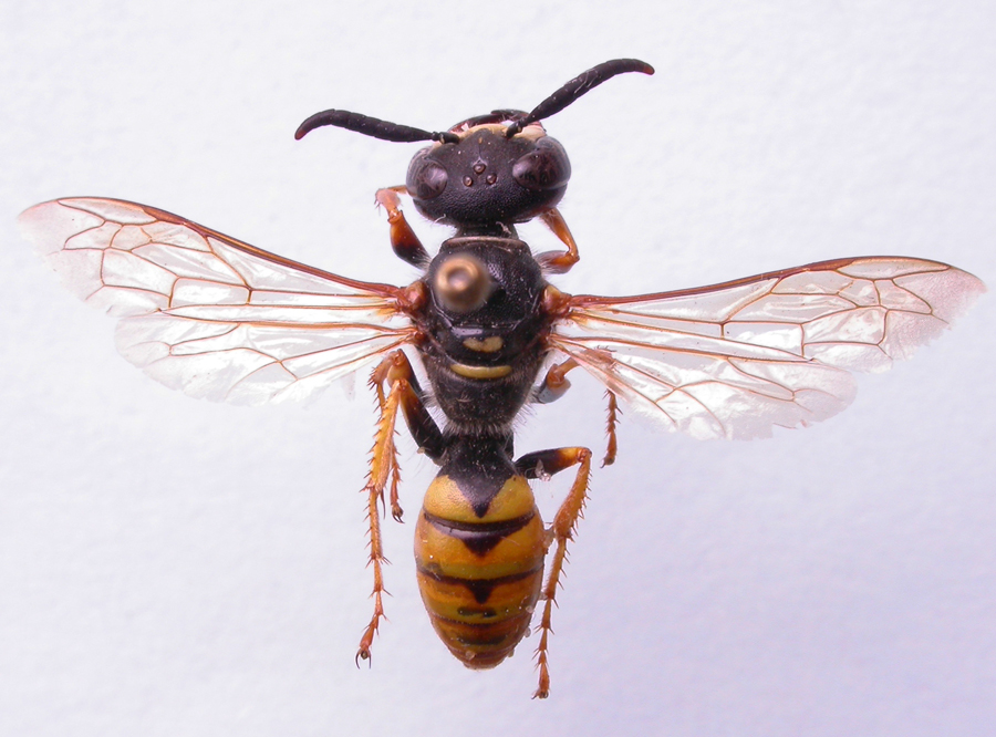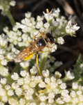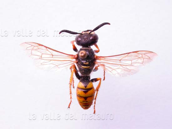 Philanthus triangulum su Echinophora spinosa, spiaggia di Baia del Re a Fano, agosto 2023 (foto G. Olivieri)