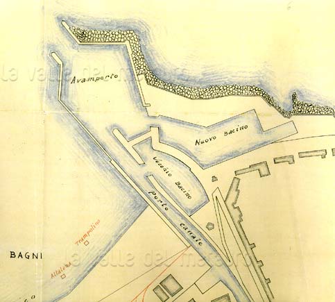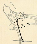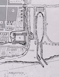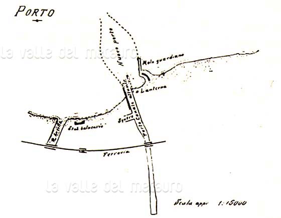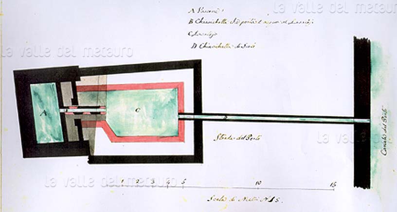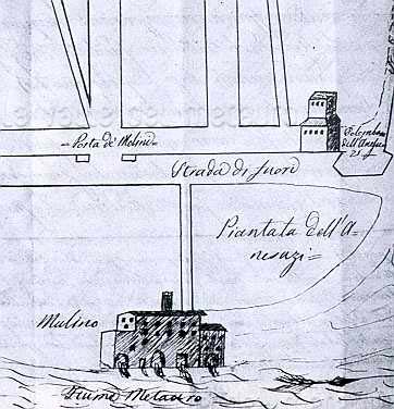 Pianta del 1616 del Mulino di Sopra. Disegno e pianta per l'ampliamento di Fossombrone del 1616 fatto dal Duca di Urbino Francesco Maria II (Biblioteca Passionei di Fossombrone)
