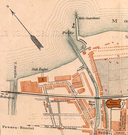 (5) Porta Marina; (6) Santuario e Convento del Beato Sante