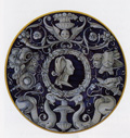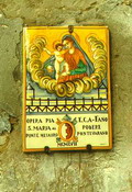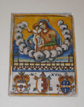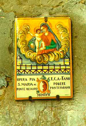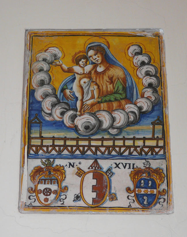 Piastrella con la Madonna del Ponte nello scalone della Biblioteca Federiciana di Fano, febbraio 2008