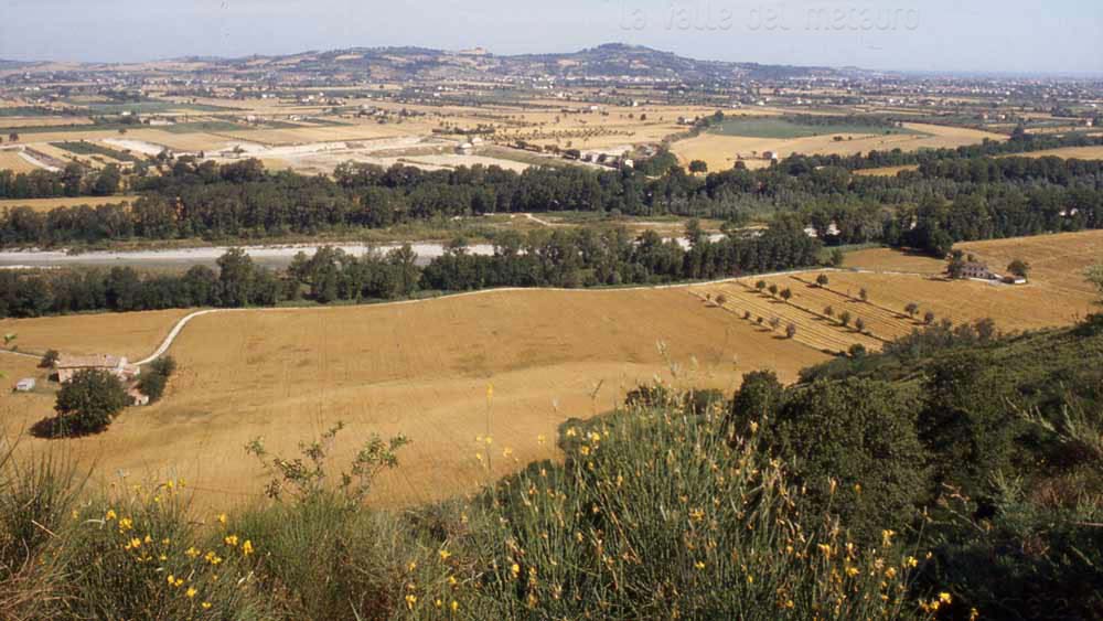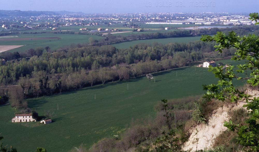 Pianura del F. Metauro tra Bellocchi e Carrara (Fano) vista dalle Ripe di Ferriano, settembre 2006. Sull'altra sponda del fiume e al di là del Vallato del Porto, in località Torno Secondo, è visibile un grande meandro abbandonato