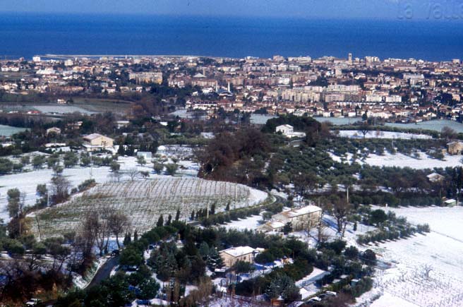Pianura costiera di Fano vista da Monte Giove, 1999. In primo piano la zona collinare e il corso del Torrente Arzilla